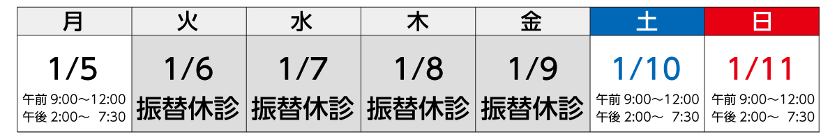 ※2026年1月10日(土)以降、通常の診療時間(午前9:00〜12:00・午後14:00〜19:30)に戻ります。